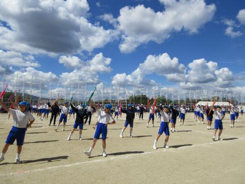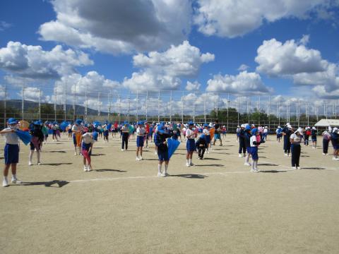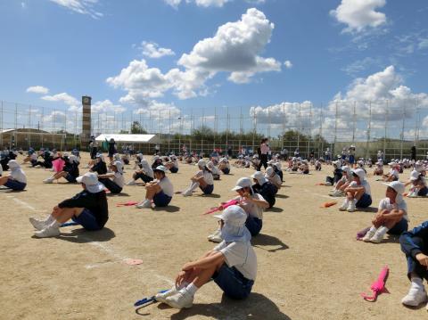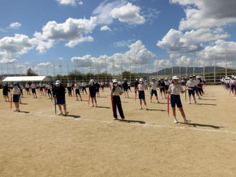 今週から高学年の団体演技練習が運動場で本格的に始まりました。