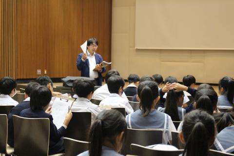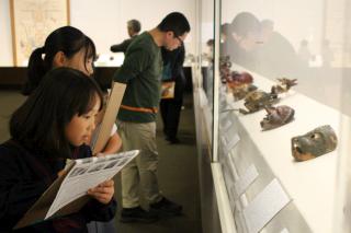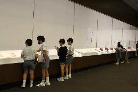 学芸員の方から直接お話を伺い、展示の背景や舞楽に込められた美意識に触れながら、子どもたちは一つ一つの作品をじっくりと見つめていました。印象に残った面の形や模様をスケッチしたり、感じたことをメモに残したりと、思い思いの方法で「ほんもの」と向き合っていました。 本校が大切にしている「ほんものに触れる教育」の一環として、今年も充実した学びの時間となりました。