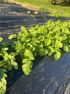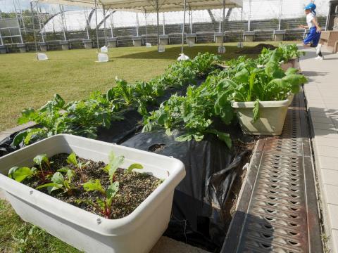 本日、ダイコンを大きく育てる過程で必要な「間引き」を行い、柔らかい間引き菜をたくさん収穫しました。