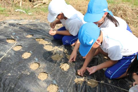 学校農園と教室前ミニ畑では、現在、ダイコンを育てています。
