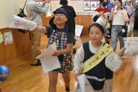 お客様に対しては、「ありがとうございました」と丁寧にお礼を伝え、どの子も笑顔で自分の役割を果たすことができました。学びを生かして協力し合う5年生の姿がとても頼もしく感じられる一日となりました。