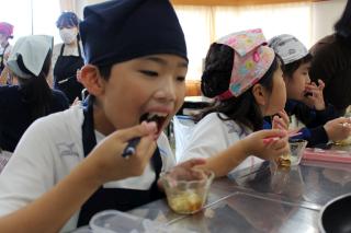できあがったみたらし団子はとてもおいしく、子どもたちは笑顔で味わっていました。