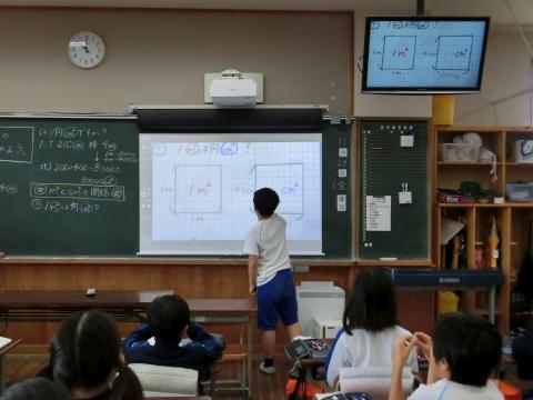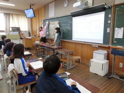 本校の算数の授業は、主担当の教員に加えてもう一名の教員が加わる2人体制で行っています。