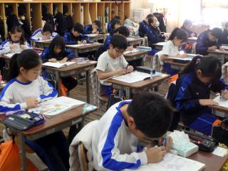 3年生は算数科で「円と球」の学習に取り組んでいます。コンパスを使って円をかいたり、「半径」や「直径」といった新しい言葉を学んだりしながら、子どもたちは初めての道具に目を輝かせています。