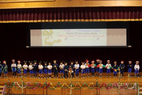 この発表会に向けて、毎朝練習を重ねてきた子どもたちも多く、当日はその成果を存分に発揮していました。英語の歌に合わせて体を動かしながら楽しく表現する姿や、自分の好きなことや得意なこと、夢を英語で紹介する場面など、内容も多彩で、会場からは温かい拍手が送られていました。