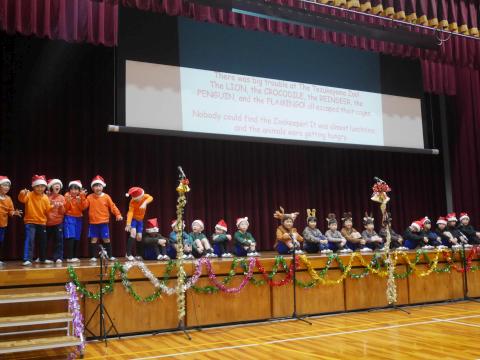 この発表会に向けて、毎朝練習を重ねてきた子どもたちも多く、当日はその成果を存分に発揮していました。英語の歌に合わせて体を動かしながら楽しく表現する姿や、自分の好きなことや得意なこと、夢を英語で紹介する場面など、内容も多彩で、会場からは温かい拍手が送られていました。