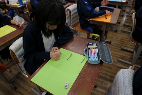星組の学級活動では、1か月後に控えた学習発表会に向けて、少しずつ準備を進めていました。