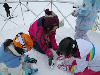 一晩でたくさんの新雪が降り積もった中、合宿3日目のレッスンが行われました。子どもたちは雪の感触を楽しみながら、初心者も経験者もそれぞれの目標に向かって意欲的に取り組み、滑りには大きな成長が見られました。最後のレッスン後には、インストラクターの先生方へ感謝の気持ちを伝え、達成感に満ちた表情が印象的でした。