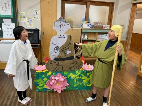 3年生も、意欲的に準備を進めています。この1年間学級の仲間や担任と共に学んできたことを生かしながら、登場人物の気持ちや場面の様子を考え、セリフの言い方や動作、表情などを工夫しています。