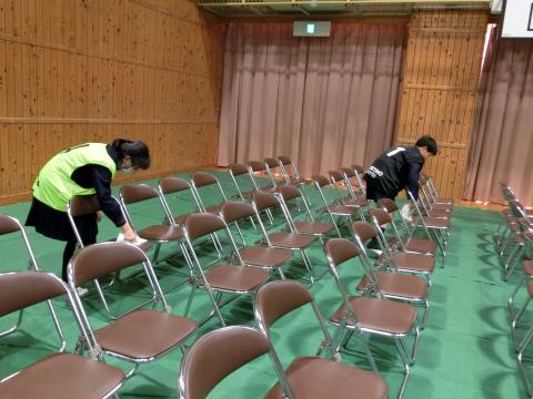 役割分担も、椅子を運び出す人、等間隔に並べる人、そして一脚ずつ丁寧に拭き上げる人など、非常にスムーズででした。
