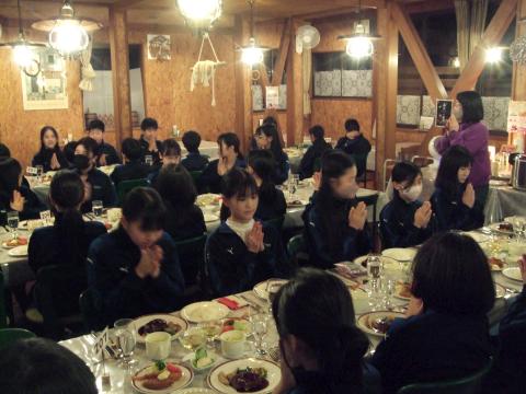 夕食のハンバーグとエビフライを完食した後は、卒業に向けた学年活動を実施。これまでの歩みを振り返り、仲間との絆を深める有意義な時間となりました。
