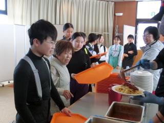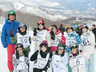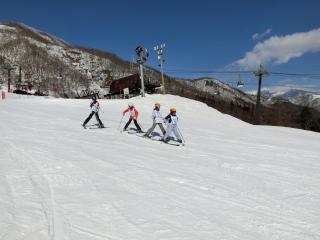 5年生時にお世話になったインストラクターとの再会に笑顔がこぼれる中、2日目のレッスンがスタートしました。最高学年らしい手際の良さで準備を整え、意欲満々にゲレンデへ向かいました。お楽しみの昼食では、大人気のミートソースを「大盛り」で頬張り、午後の活動へ向けてエネルギーをフルチャージしました。 午後は全員でゴンドラに乗り、北アルプスを一望する山頂へ。卒業を前に最高の景色をバックに記念写真を撮影しました。その後、雪質の良い斜面で練習を重ね、無事レッスンを終了しました。