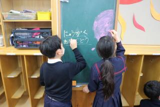 明日、ピカピカの一年生に会えることを、帝塚山小学校のみんなで楽しみにしています。