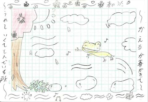 4年生の国語科の授業では、草野心平さんの詩『春のうた』の学習を行いました。